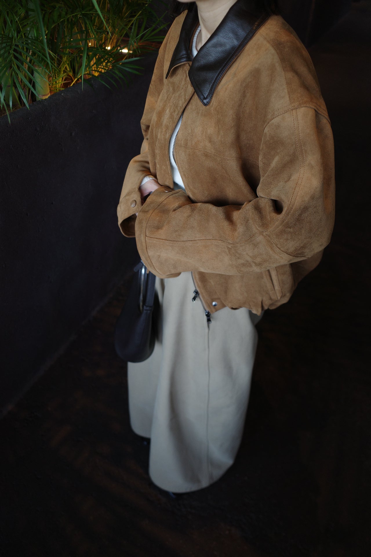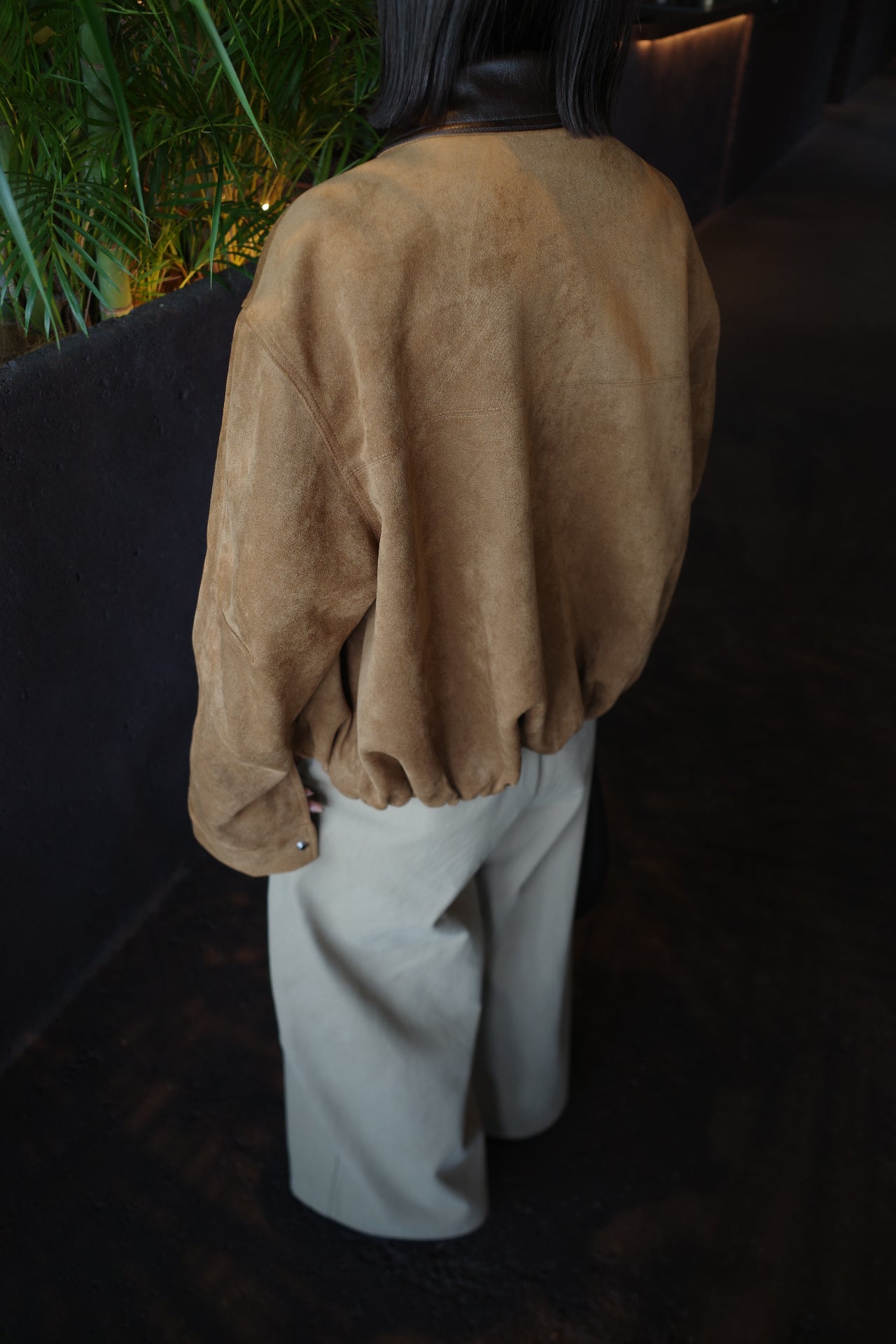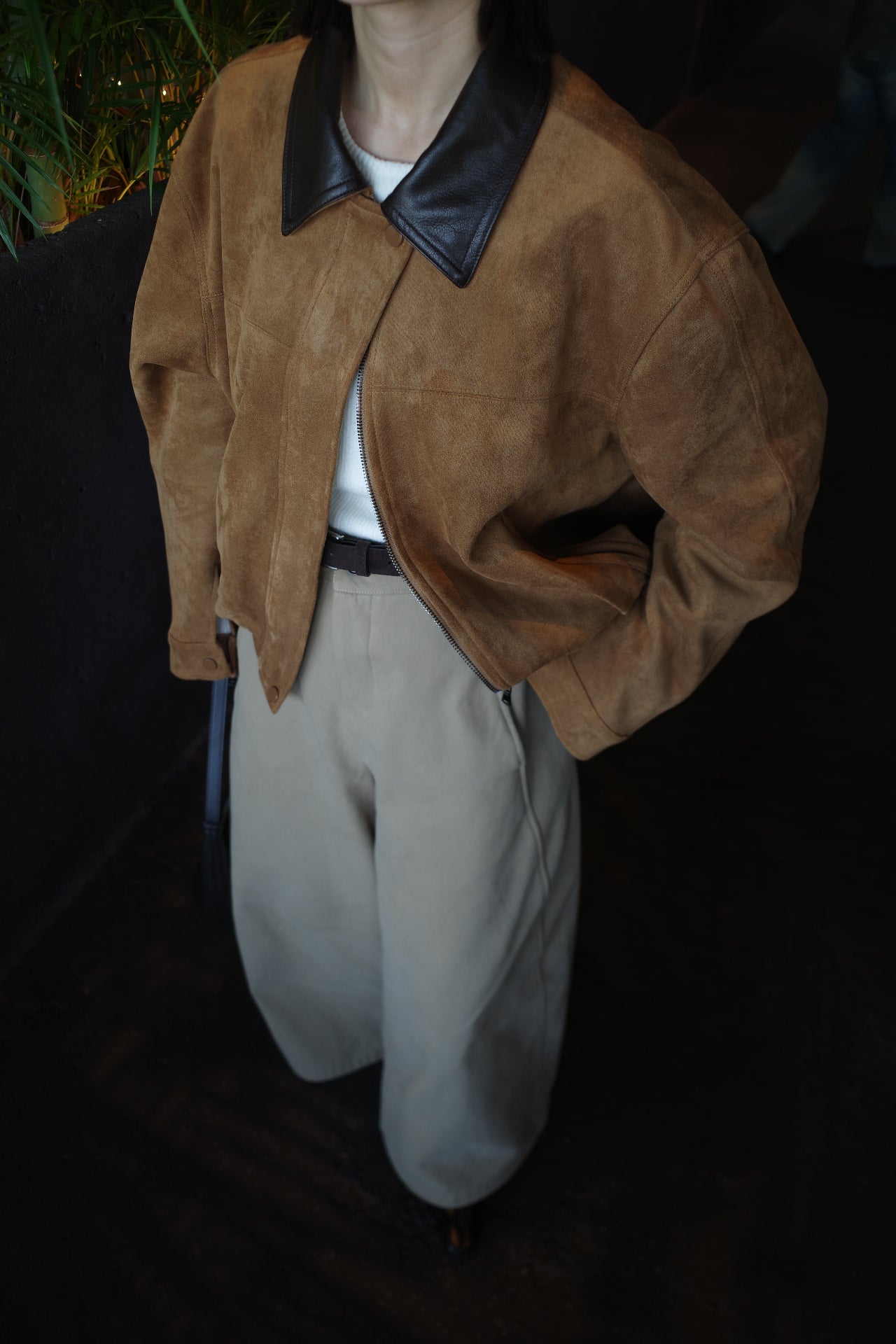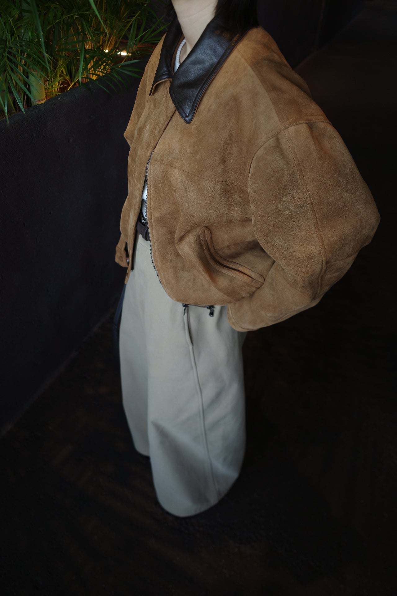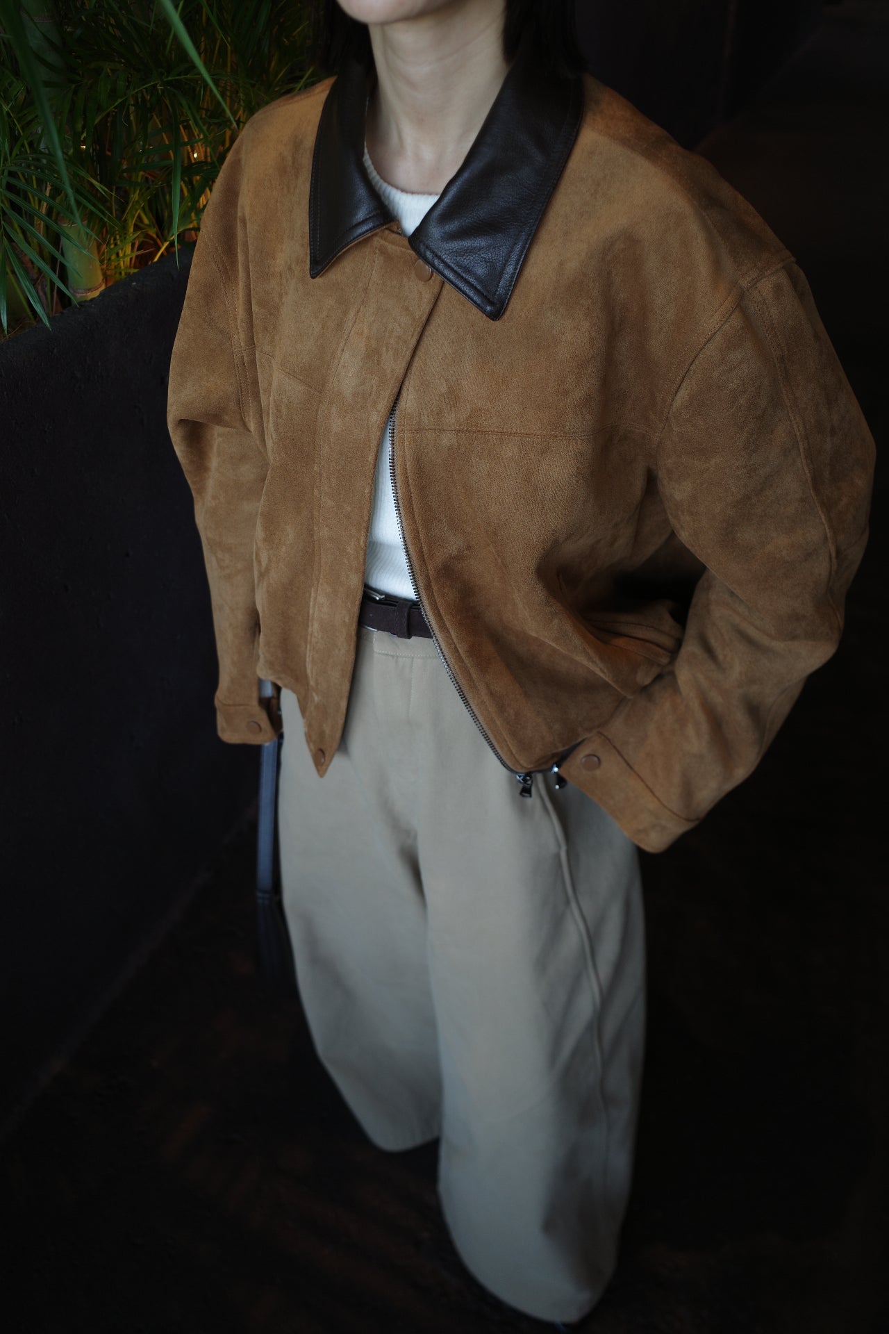 Collar leather suède blouson