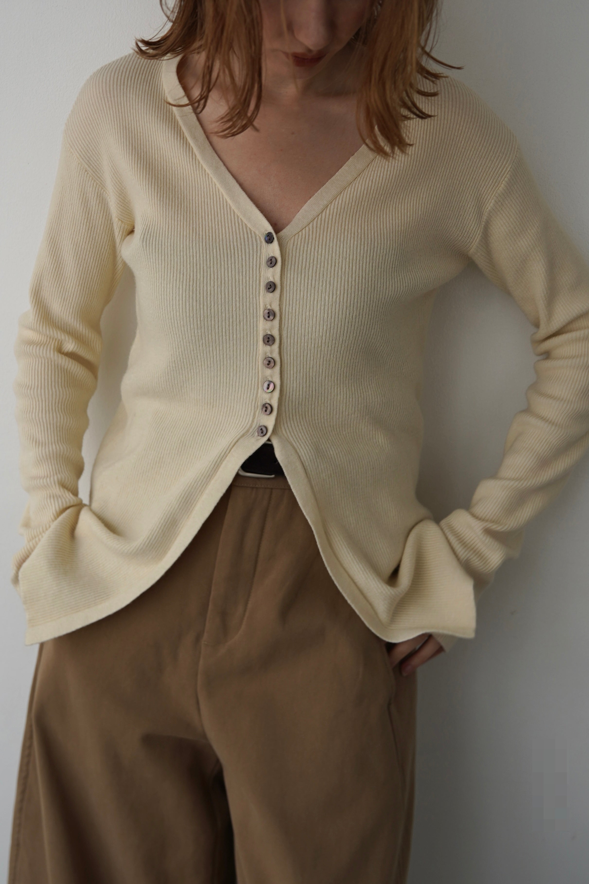 【再入荷】Vneck button lib cardigan